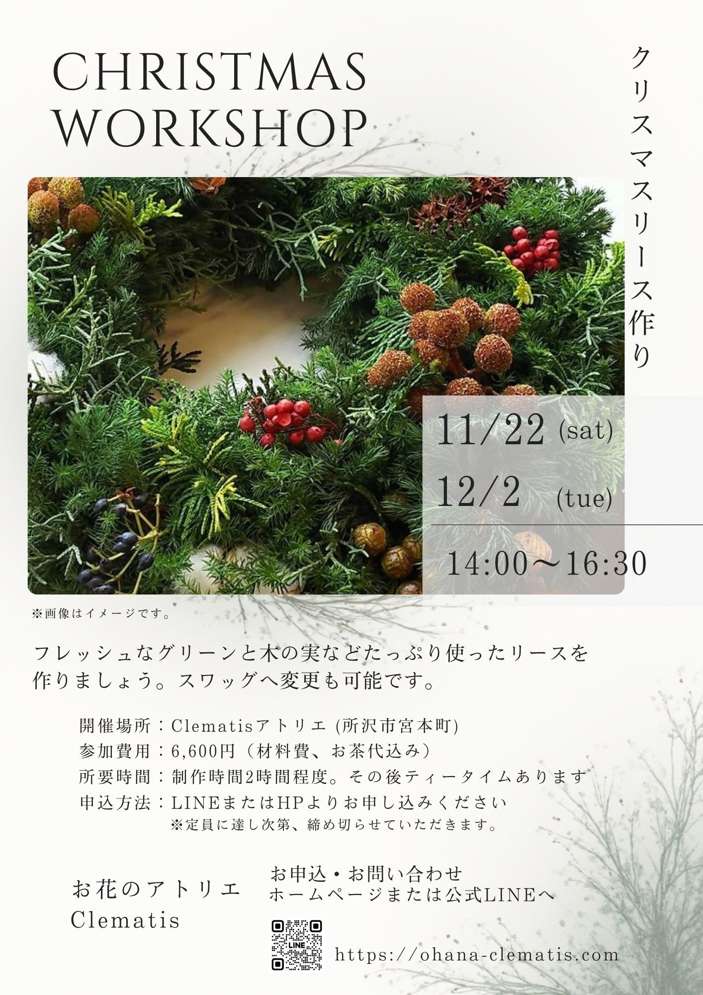 クリスマスリース、スワッグワークショップショップ